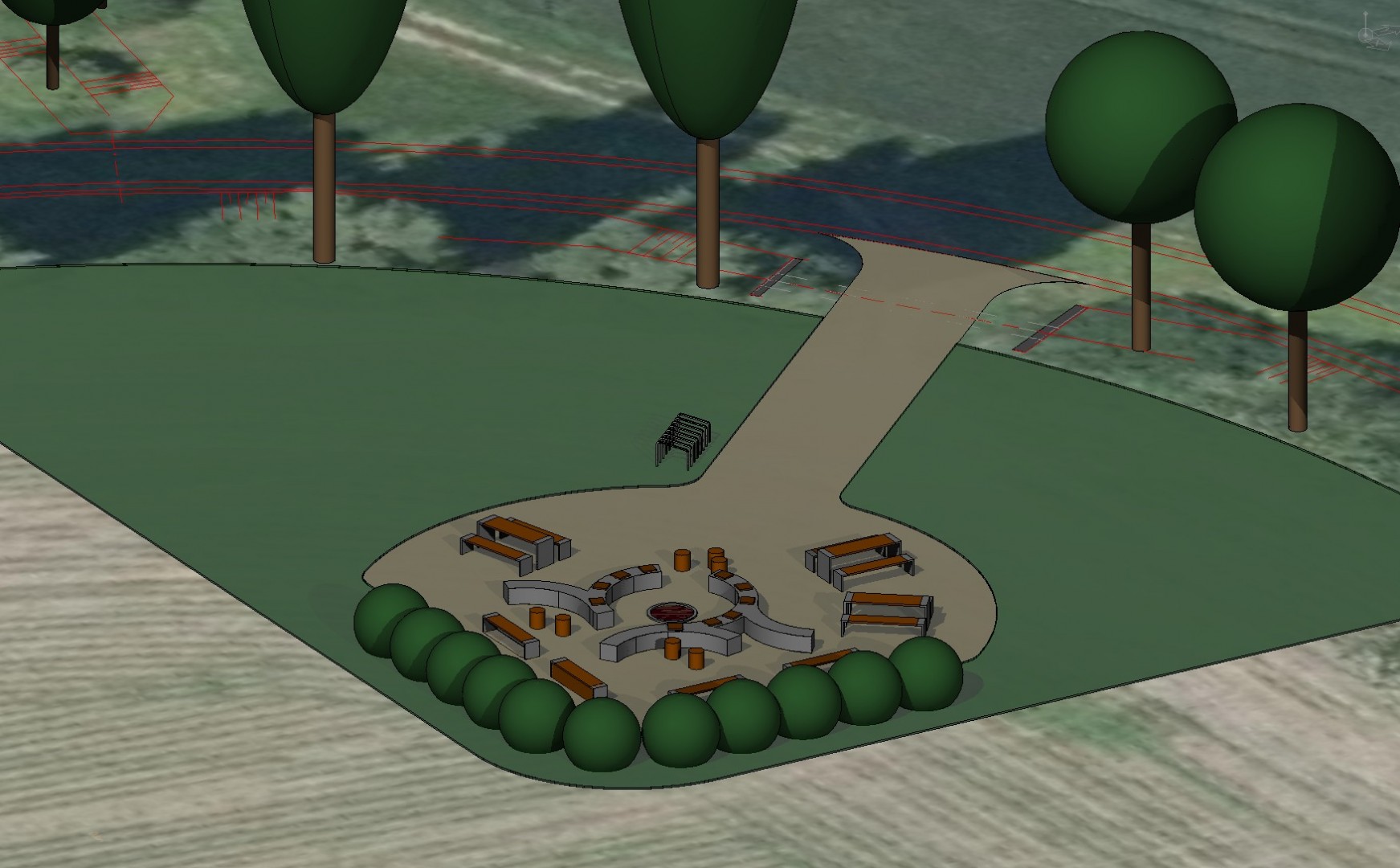 Ohniště může být později doplněno o pergolu pro zastínění před vlivy počasí a dalšími prvky.