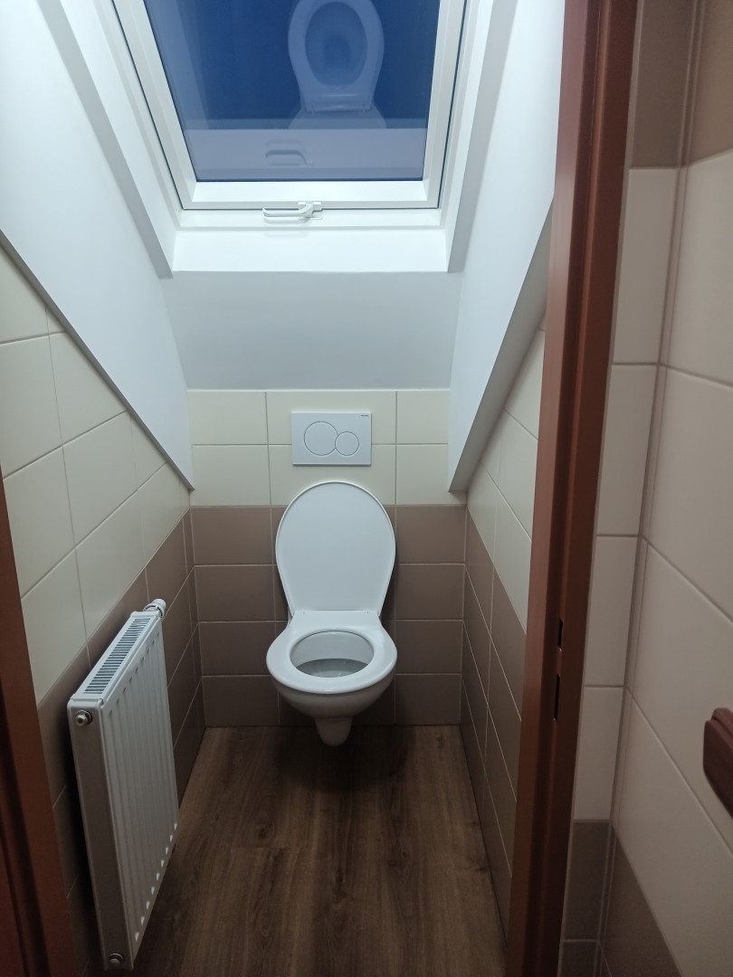 PD řešila novou střechu se zateplením, statiku stropu pro nové prostory, novou dispozici podkroví včetně všech řemesel, nové vytápění podkroví, nové přípojky, hromosvod, požárně bezpečnostní řešení stavby a energetický posudek.
