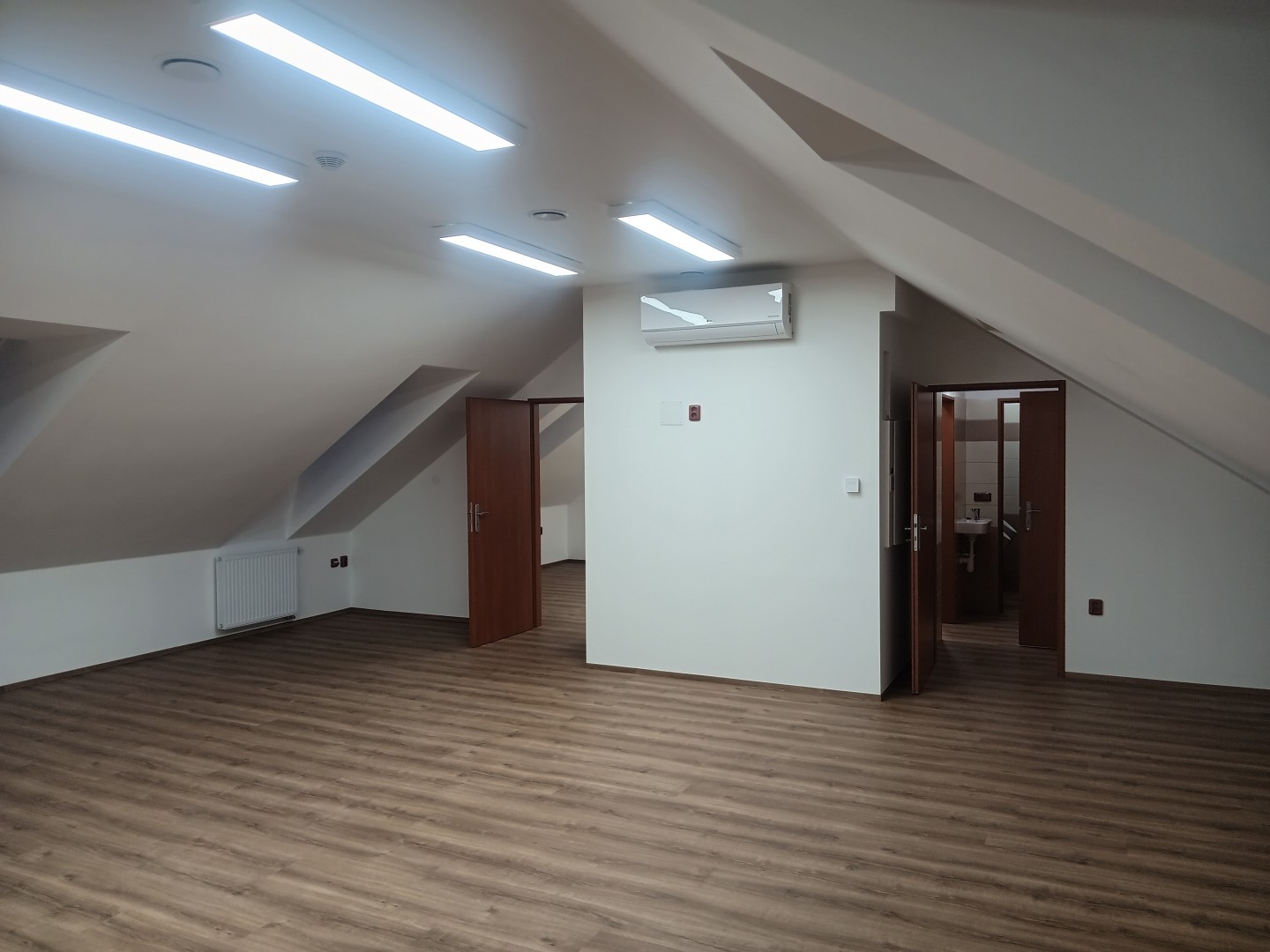 V podkroví je nově navrženo sociální zázemí (sprchová kabina, WC muži a WC ženy, čajová kuchyňka). Zbytek podkroví bude sloužit jako klubovna a školicí místnost pro členy HZS.
