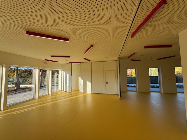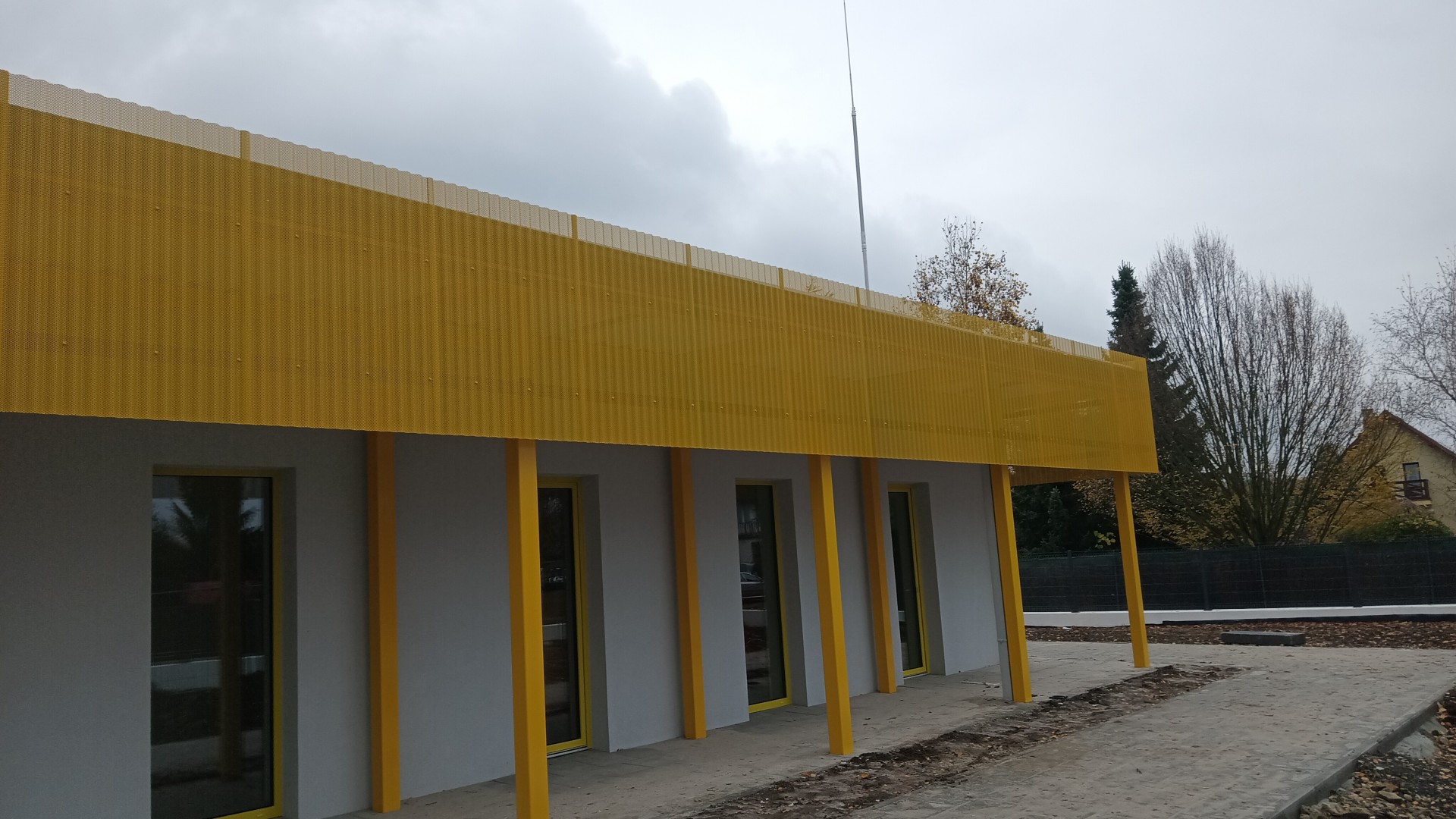 V říjnu byla stavba dokončena a v listopadu probíhají úpravy zelených ploch a venkovních hřišť.