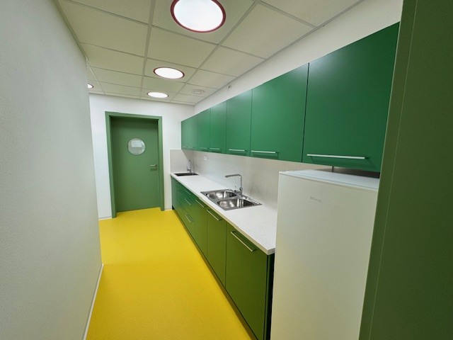 Každý dílčí provozní celek zahrnuje otevřený prostor jídelny a herny s lehárnou, která bude variabilně dělitelná mobilními posuvnými stěnami. Provoz doplňuje samostatně WC se sprchou, výdejna jídla (bez vaření), sklad pomůcek, zázemí pro zaměstnance, kancelář. Z herny je umožněn pro každý soubor samostatně vstup do zahrady přes dveře prosklené fasády. Zajištění potřeb provozu v prostorách na zahradě je pomoci oddělených skladů a samostatných WC, přístupných odděleným vstupem v místě vedlejšího vstupu z prostor zahrady, které jsou navíc po obvodu budovy přístupné krytým bezúrovňovým ochozem.