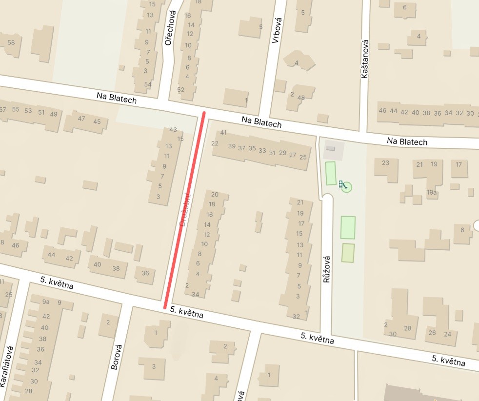 • Družební – obě strany ulice o celkové ploše cca 500 m2
