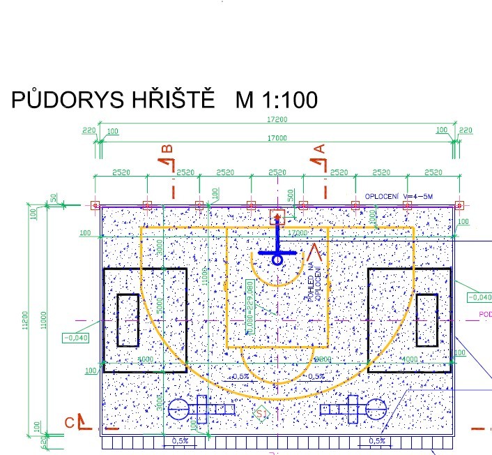 🏗 Basketbalová konstrukce: Ocelová konstrukce koše bude osazena do ocelového pouzdra.