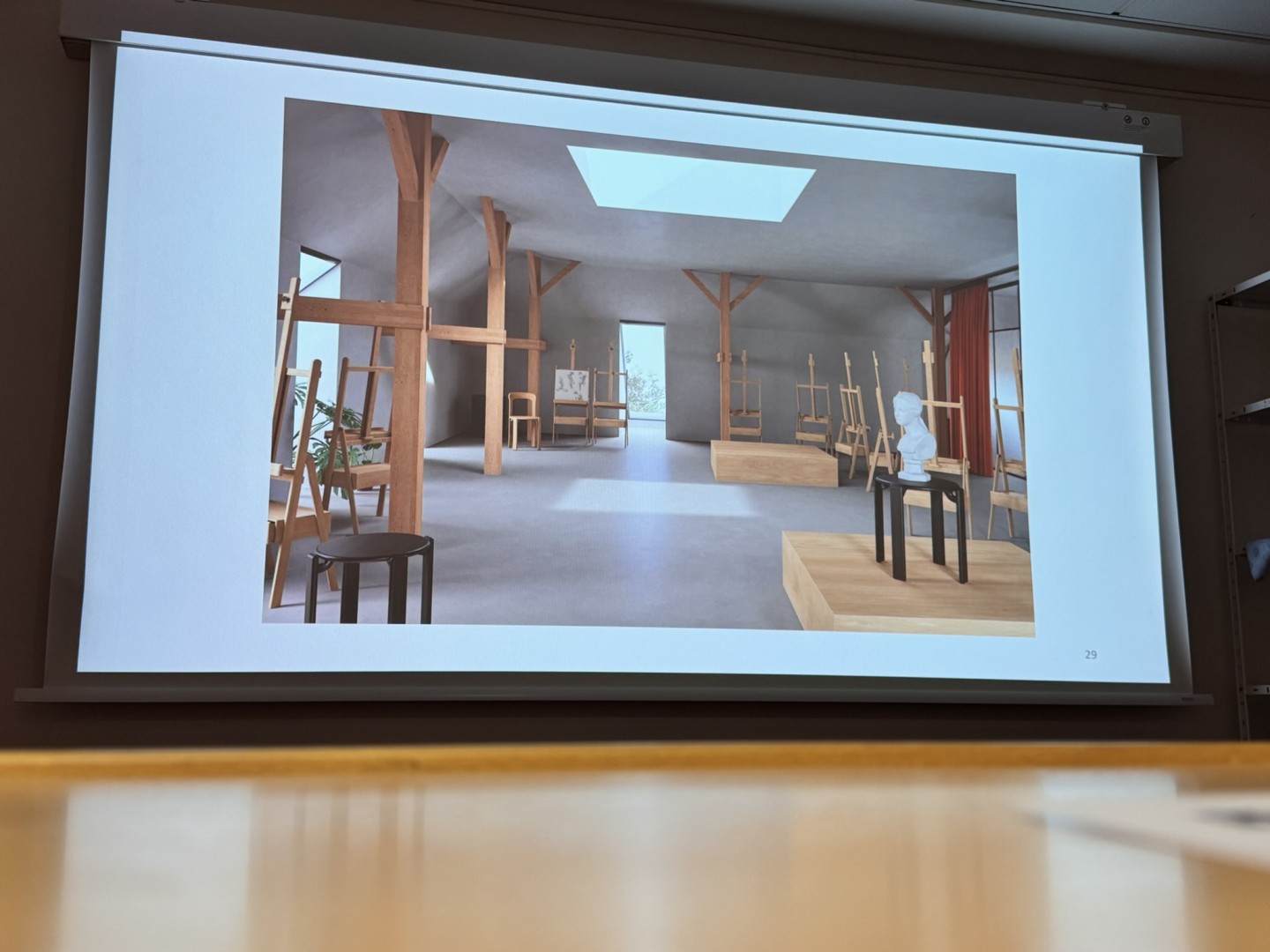 V průběhu října a listopadu 2025 proběhly na Fakultě stavební VUT v Brně dvě průběžné prezentace, během nichž studenti představili první varianty dispozičního a provozního řešení objektu Městské knihovny pro potřeby ZUŠ. Zástupci města Prostějova se obou setkání aktivně účastnili a poskytli studentům odbornou zpětnou vazbu z hlediska reálných nároků jednotlivých uměleckých oborů stejně jako z pohledu technických a prostorových možností stávající budovy.