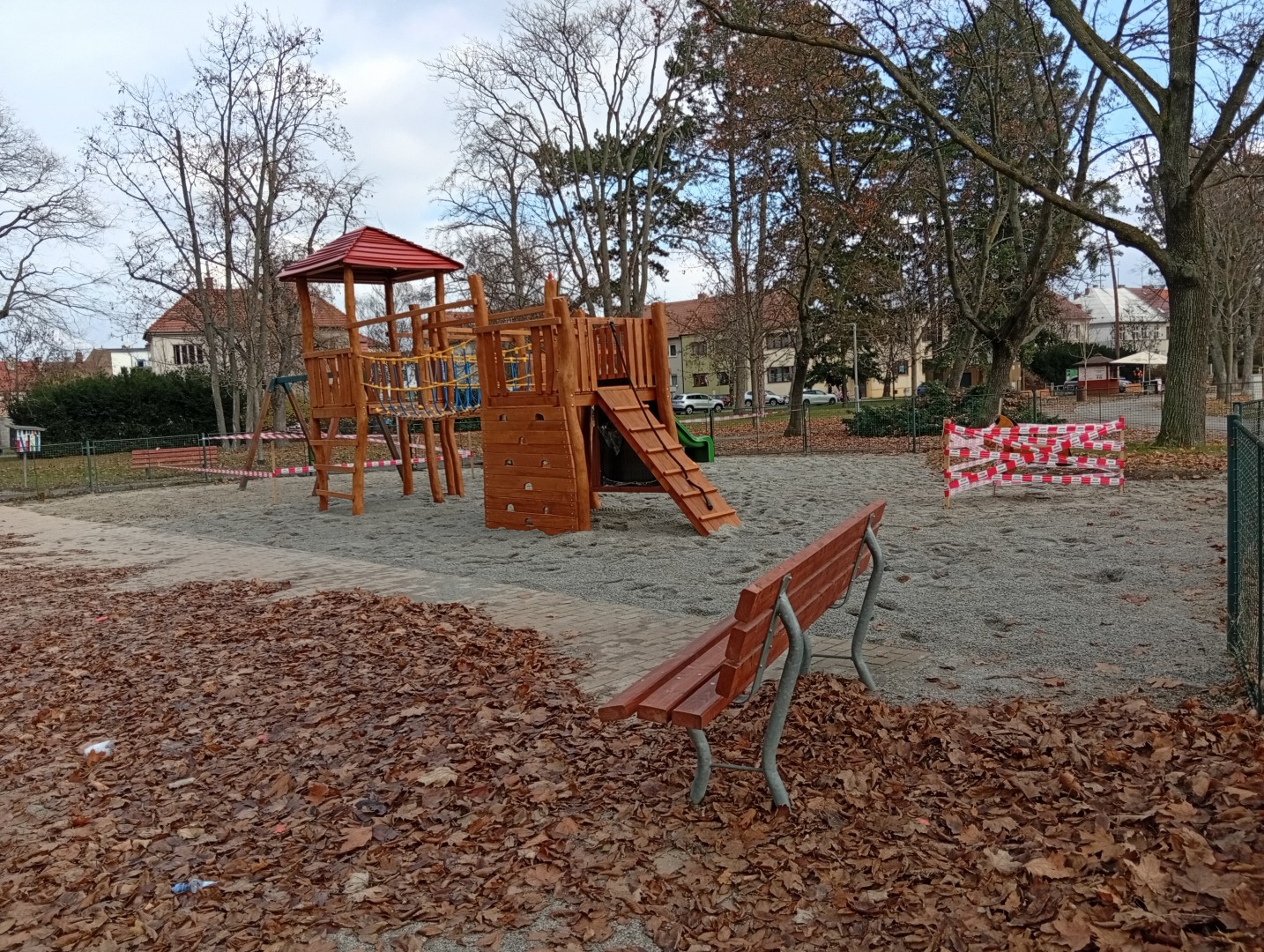 Pracovníci magistrátu vyhodnotili potřebné přípravné práce, např. odstranění stávající pergoly a betonové skruže, 2 tabulí na kreslení, lavičky ve východní části areálu u oplocení, vyjmutí prvku malého kolotoče, odstranění betonové dlažby pro umístění nového herního prvku a odstranění některých obrubníků na hřišti.
